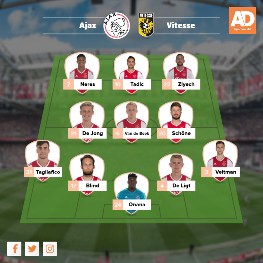 Opstellingen Ajax Heracles. In speelronde negen gaat Ajax op bezoek bij. We hopen dat hij voor de thuiswedstrijd tegen FC Midtjylland helemaal hersteld zal zijn maar voor vandaag neemt David Neres zijn plek waar.